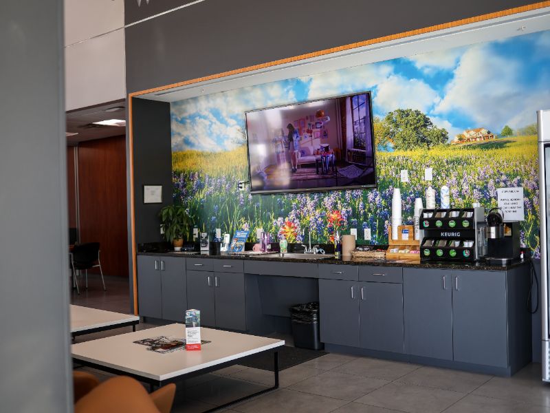 Our modern facility, conveniently located just past Home Depot off I-30, was fully remodeled in 2016 to enhance your experience from the moment you arrive. The showroom features a spacious layout with the latest Chrysler, Dodge, Jeep, and Ram models on display, while our comfortable customer lounge offers free snacks, popcorn, and drinks to make your visit enjoyable.
