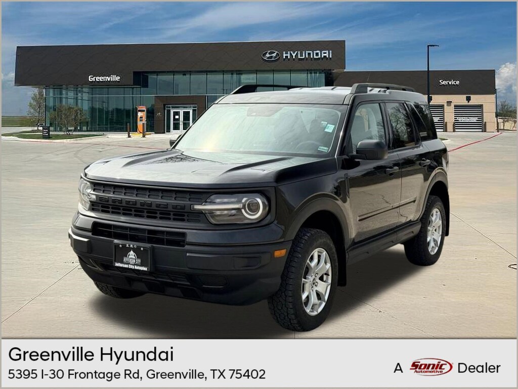 All Service Work Complete!! * 2022 Ford Bronco Sport Base featuring 4WD, Blind Spot Monitor, Front Collision Mitigation, Cross-Traffic Alert, Lane Departure Warning, Lane Keeping Assist, Back-Up Camera, Auto Start-Stop Technology, Bluetooth Connection, Smart Device Integration, Auxiliary Audio Input, WiFi Hotspot, LED Headlights, Steering Wheel Audio Controls, Keyless Entry, and more. Clean Carfax vehicle. Our highly trained technicians inspected this vehicle and reconditioned it to Sonic Safety Standards. We are a Sonic Automotive Premier Dealership and strive every day to make your experience with us unforgettable. Sonic Automotive is one of the largest automotive retailers in the United States and a leader in the industry. Our mission is to be one of America's best places to work and shop. Our dealerships offer a variety of services from new and used vehicle sales, warranty, extended warranty, collision repair, parts replacement, financing and insurance. Best of all, we offer our Sonic Price on each and every vehicle we sell. Sonic Price is based on the selling price of similar vehicles in the market and it's your assurance that you are being offered a price that is straightforward, accurate, and in line with what you've likely researched. This eliminates the need for haggling and negotiations and puts the focus on finding you the vehicle of your dreams. Throughout the car shopping experience, we strive to provide the price you want, the knowledge you need and a dealership you can trust. Please contact us for further information or stop in and see us! A GREAT TIME TO BUY! We have reduced our prices across the board with the goal of increasing our overall volume. Demand in the exploding used car market is at an all- time high, causing trade values to skyrocket. These are great conditions if you are in the market for a new vehicle. All recommended services are complete. You will have a pleasant shopping experience that is fun, informative, and never high pressured. Please don't hesitate to give us a call. Please verify any information in question with Greenville Hyundai, located at 7311 I-30 Frontage Rd, Greenville, TX 75402. Thank you for choosing Greenville Hyundai!